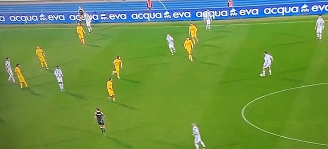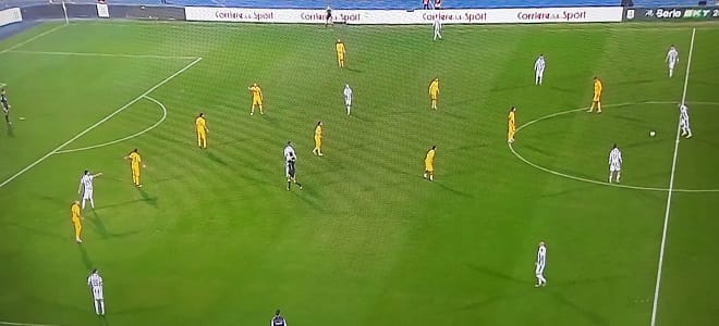 Però… Però… non avevamo intanto rinunciato a quell’inizio di automatismi che tanto bene ci avevano fatto con Pisa ed Empoli? Non stavamo giocando un 3-5-2 in fase d’impostazione ben più larghi del solito, sì per scardinare il loro muro ma comunque perdendo nel fraseggio stretto?