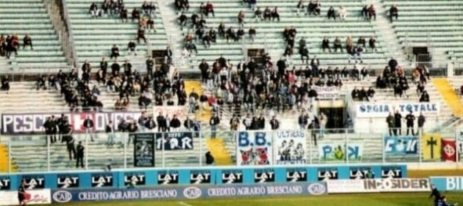 Nemicissimo , lo striscione lungo è quello BAD BOYS PESCARA blu con caratteri bianchi