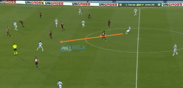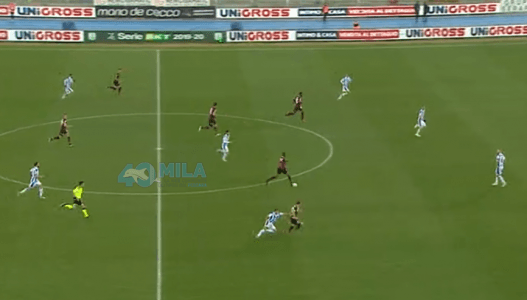 Lasciamo poi stare un punto chiave: la squadra si allunga e non riesce a salire compatta. Per cui, GALANO e MACHIN non segnano più perché rimangono spesso distanti dall’area.