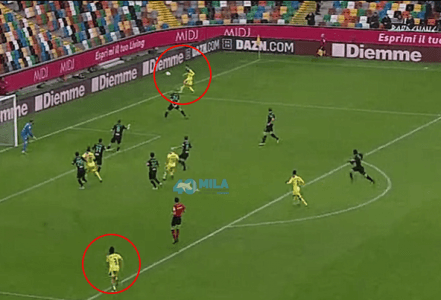 PALMIERO in ritardo nel seguire gli inserimenti; il loro attaccante tirerà libero: sarebbe stato 1-0