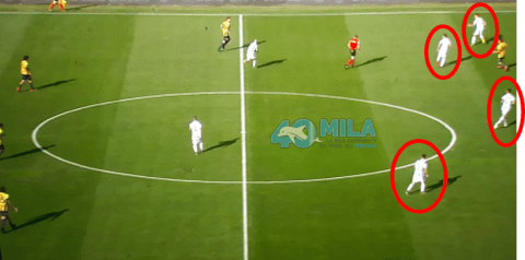 La linea di centrocampo a 4 in fase di non possesso