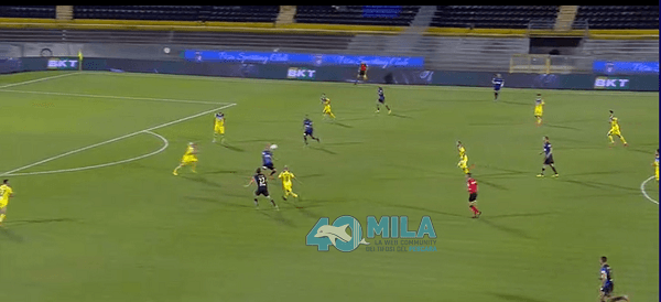 5-3 difensivo prima del cross sul 1° gol pisano. MEMU indica l’arrivo di Belli: ci andrà ma se lo perderà. In più, SCOGNA non scalerà ad aiutarlo