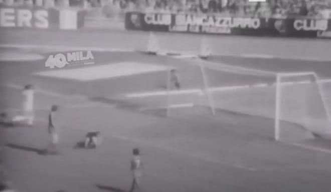 Tre minuti ancora e il Napoli usufruisce di una punizione dal limite vista solo dall’arbitro Bergamo; persino i giocatori azzurri restano sorpresi. Tutti si aspettano il tiro dei soliti Chiarugi o Savoldi, e invece a sorpresa tira Bruscolotti che, per l’occasione, dimostra tutto il suo essere terzino: una “ciabattata” da farci piegare in due per il ridere … nemmeno al Rampigna per i campionati amatoriali!… Ma purtroppo non c’è proprio niente da ridere, anzi abbiamo molto da piangere nel vedere Piloni farsi superare praticamente da uno “straccio bagnato”; una palla che poteva essere fermata senza problemi con una mano sola.