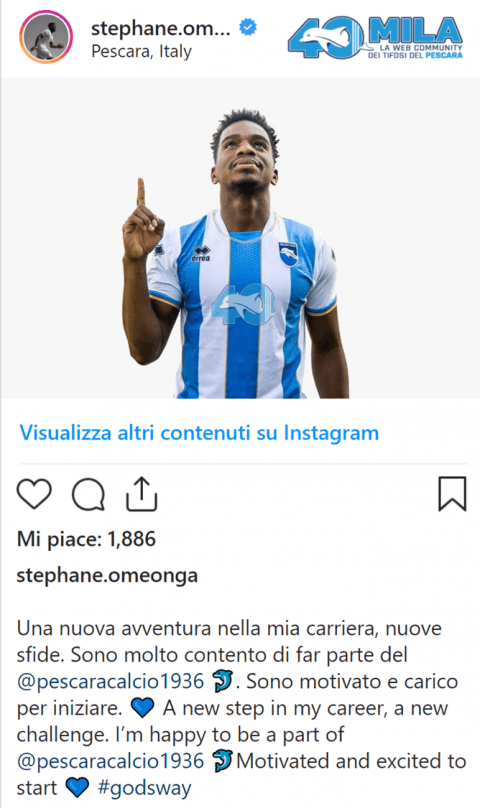 Stephane OMEONGA: “Una nuova avventura nella mia carriera, nuove sfide. Sono molto contento di far parte del Pescara. Sono motivato e carico per iniziare”.