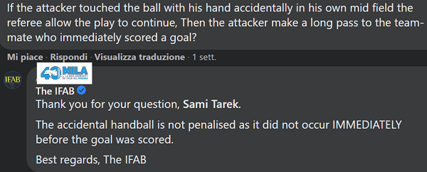 UK, la prima, quella sul mano in area, lo dice solo Rizzoli. Non ho trovato una regola internazionale. La regola non è cambiata ma è in Italia che Rizzoli dice che bisogna cambiare modo di fischiare quei mani in area. La seconda è invece una risposta data dall’IFAB e quindi è internazionale. E’ un cambiamento del modo di applicare una regola