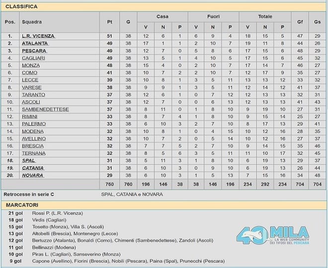 E poi Virdis che, subito dopo aver appreso degli spareggi, dichiara: “In A vanno sicuramente Cagliari e Atalanta, il Pescara non ce lo vedo” … Forse perché ancora nessuno gli ha detto che gli occhiali sono stati inventati da un pezzo.