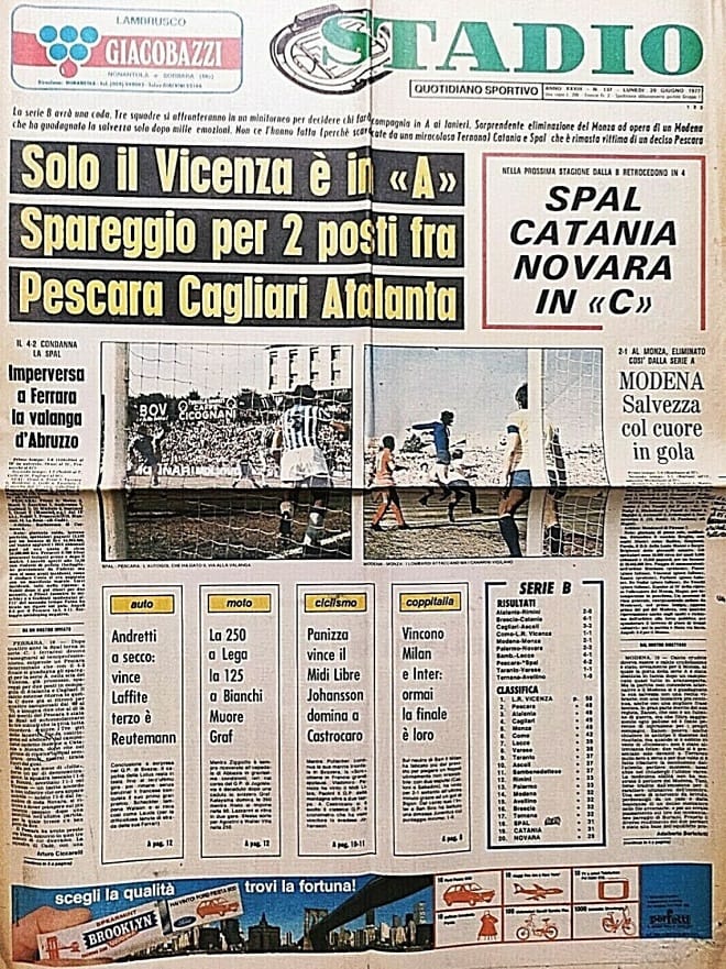La classifica alla vigilia dell’ultima giornata di serie B 1976/77