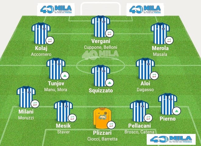 • DELLI CARRI: La squadra la facciamo in base alle esigenze funzionali dell’allenatore. ACCORNERO è un giocatore adatto al nostro allenatore. SQUIZZATO nasce [come play] basso ma è duttile e con gamba: noi l’abbiamo preso per fare il play, il metodista, il regista basso. ALOI è il nostro jolly [di centrocampo – ndr]. O Spalluto o Tommasini: sono due nomi; poi, ce ne sono altri. Tra i portieri, il più bravo giocherà. Floriani Mussolini potrebbe essere…