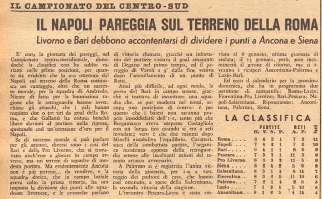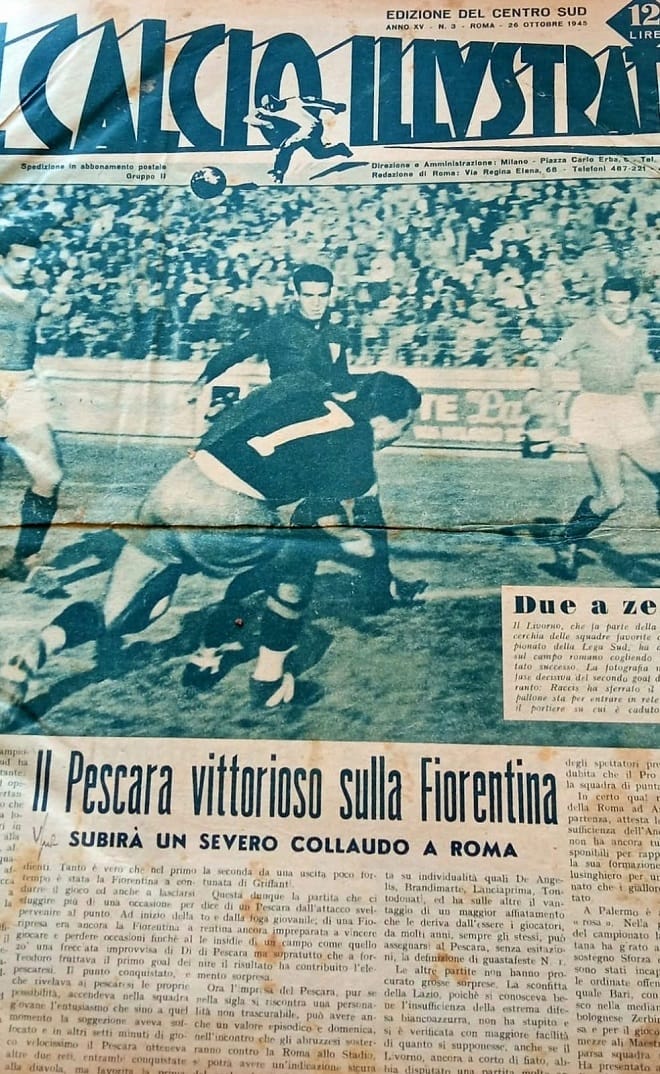 “Nel 1945 andavano in serie A le prime cinque in classifica. Se il Pescara non avesse perso con il Livorno in casa (2-1) avrebbe ottenuto la promozione. La classifica finale fu: Roma 18, Napoli e Bari 17, poi Livorno 14, Pescara 10.