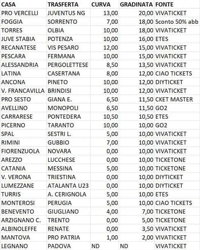 Allora qua erano i secondi più costosi su 30 per la gradinata centrale. O i quinti se prendiamo i distinti laterali. I quarti per la curva. Su trenta.