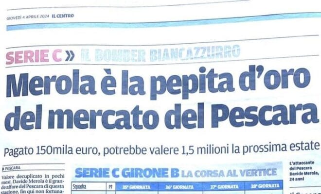 - “Merola è la pepita d’oro del mercato del Pescara – Il Pescara non intende cedere a tutti i costi la sua attuale pepita d’oro, ma è chiaro che di fronte ad offerte vicine alle cifre della valutazione attuale non potrebbe tirarsi indietro, anche per dare al 24enne pupillo di Zeman la chance di misurarsi nuovamente con la categoria superiore”.